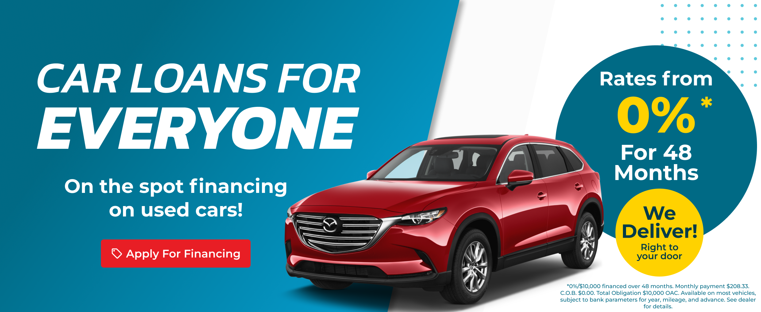Take advantage of our no cost, no obligation pre-approval service. Apply online, by phone, or in person at one of our locations regardless of credit. We have finance solutions for all credit situations.